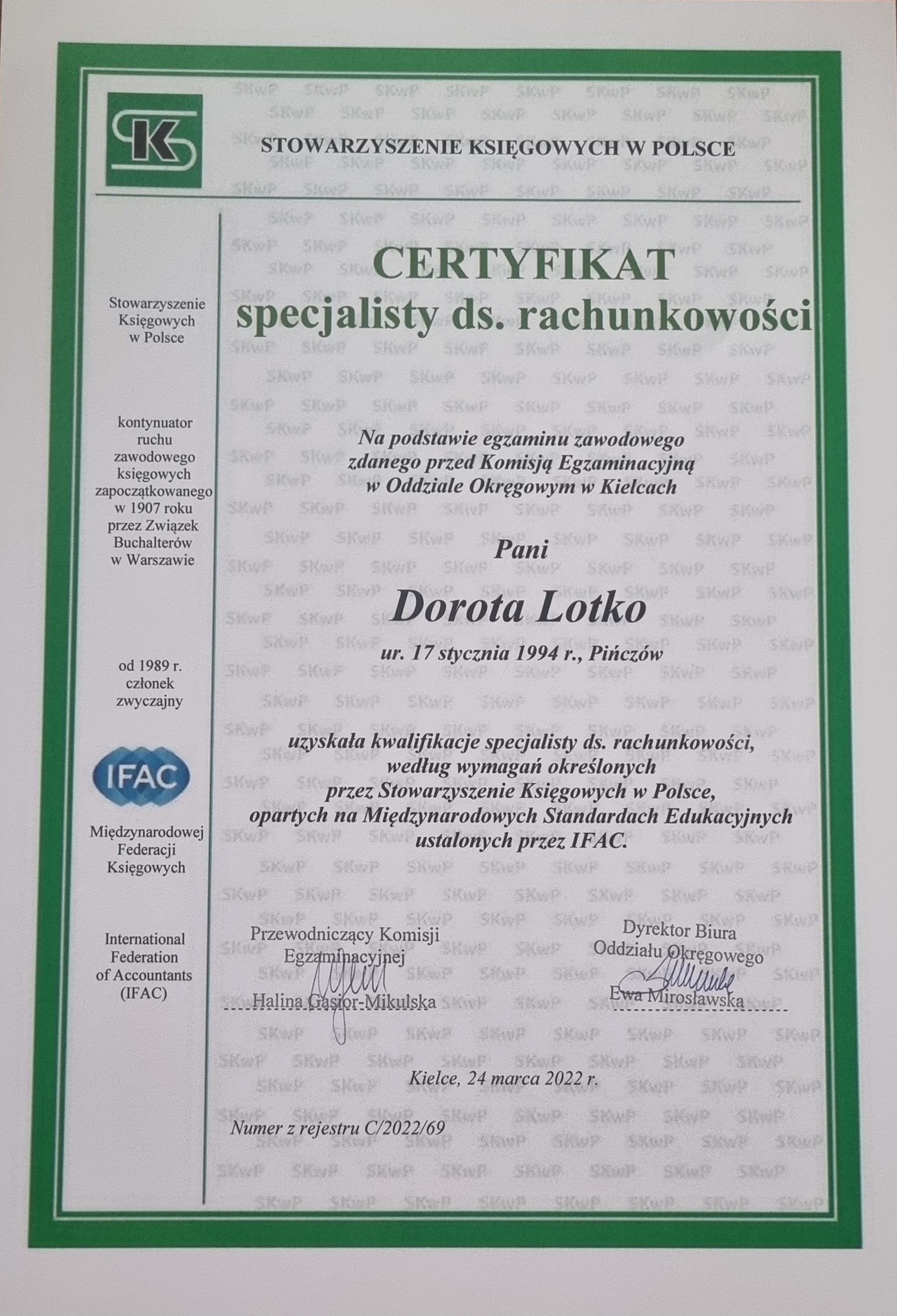 ds. rachunkowości wydany przez Stowarzyszenie Księgowych w Polsce. Obecnie przygotowuję się